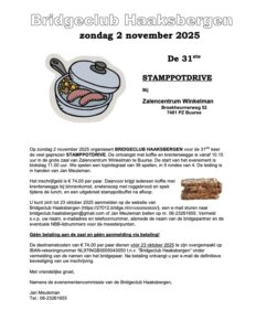 De jaarlijkse stamppotdrive is dit jaar op 2 november. Hieronder staat de informatie hoe je je kunt opgeven. De stamppotdrive staat open voor leden en niet-leden.
