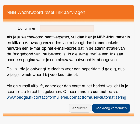Vul je NBB-nummer in en je ontvangt op je mailadres dat bij de NBB bekend is een nieuw wachtwoord